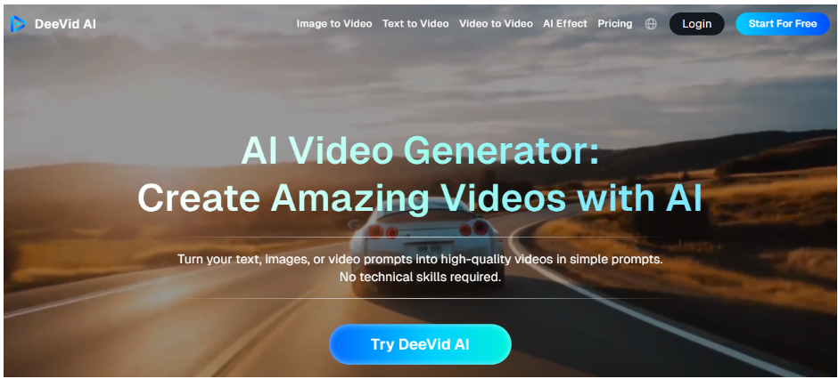 Deevid AI is an AI-powered video creation platform that transforms text, images, or existing clips into short, high-quality videos in seconds.